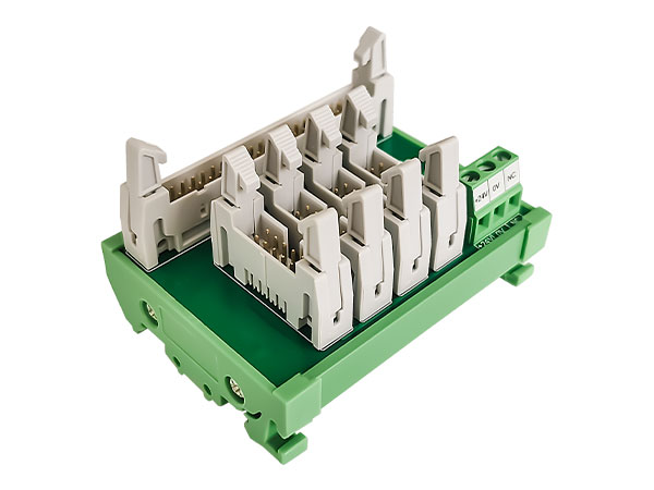 ④ 柵欄式端子輸出 ⑤4路繼電器模組,體積減小到最小⑥ 采用LED動作顯示,各輸入輸出端狀態 一目了然