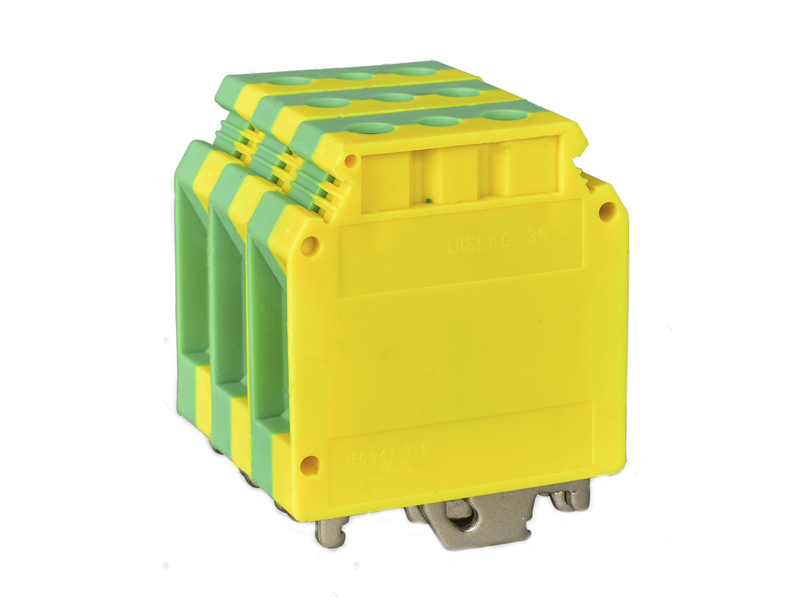 USLKG35黃綠接地端子,接線方式: 螺釘連接,連接量: 2,橫截面:0.75 mm?-50 mm?, AWG: 18-1/0,寬度: 15.2 mm,顏色: 黃綠相間,安裝方式: NS 3517.5,NS 35/15,NS 32,USLKG35接地端子符合IEC609477-2標(biāo)準(zhǔn)最大電流150A剛性導(dǎo)線接線范圍0.75-35mm柔性導(dǎo)線接線范圍0.75-50mm,M6螺釘,ZB10標(biāo)記,ZB12也可以,中央緊固螺釘M5/2.5-3NM扭矩力,是UK接地端子中的